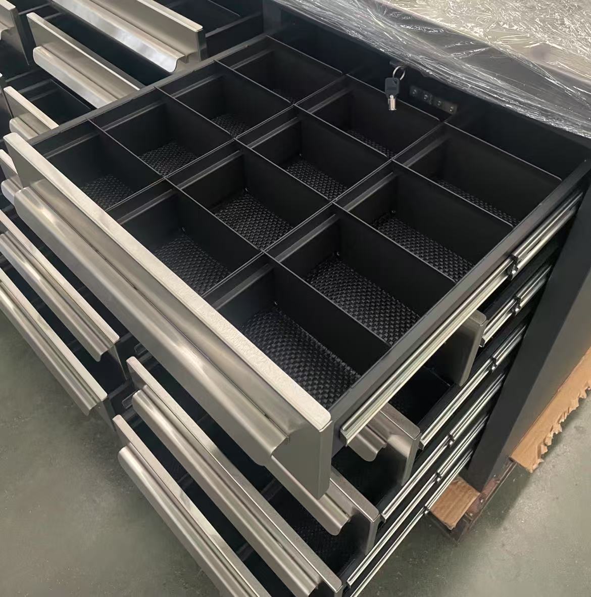 นอกจากนี้ลิ้นชักยังติดตั้งตัวแบ่งที่ปรับได้ช่วยให้ผู้ใช้สามารถปรับแต่งเค้าโครงภายในตามขนาดและประเภทของเครื่องมือ ระบบการแบ่งพาร์ติชันที่ปรับได้นี้ไม่เพียง แต่เพิ่มการใช้พื้นที่สูงสุด แต่ยังส่งเสริมองค์กรที่ดีขึ้นทำให้การดึงเครื่องมือได้เร็วขึ้นและใช้งานง่ายขึ้น
