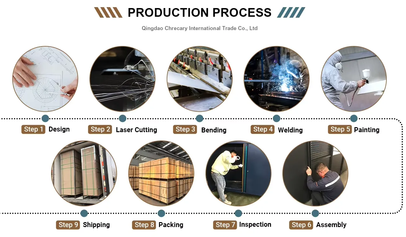 1. การจัดหาวัตถุดิบวัตถุดิบ: แผ่นเหล็กรีดเย็นคุณภาพสูงได้รับการคัดเลือกอย่างระมัดระวังเป็นวัสดุหลักเพื่อให้แน่ใจว่าความแข็งแรงของวัสดุและความเหนียวเป็นไปตามมาตรฐานที่สูง ในเวลาเดียวกันมีการซื้อวัสดุเสริมคุณภาพสูงหลายชนิดเช่นสไลด์แบริ่งลูกบอลสำหรับลิ้นชักล็อคและล้อ