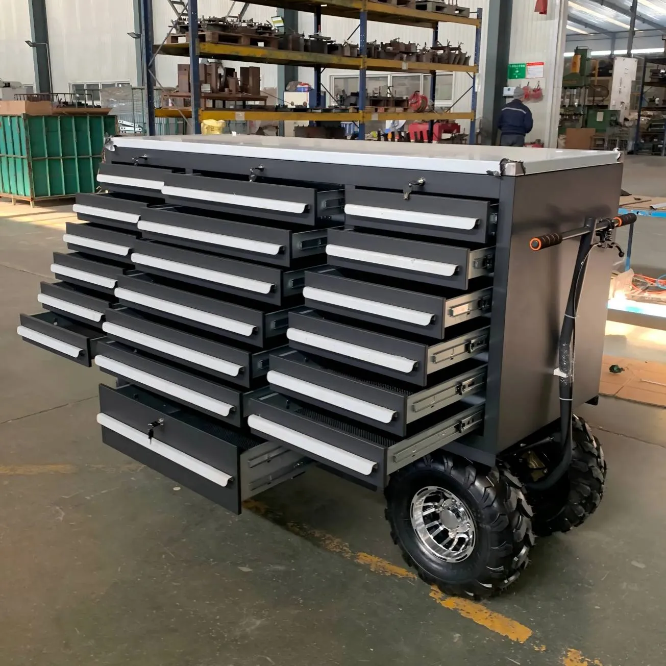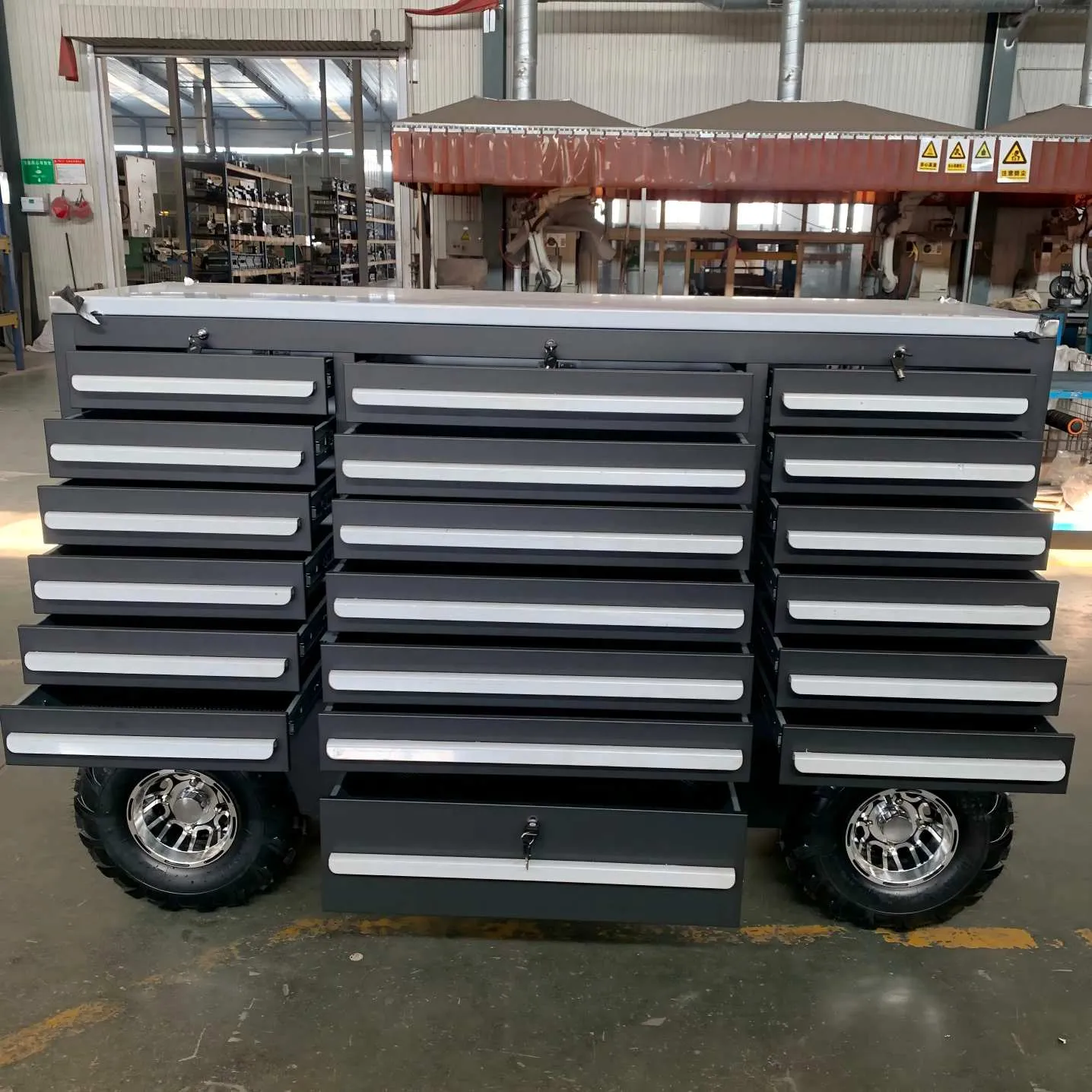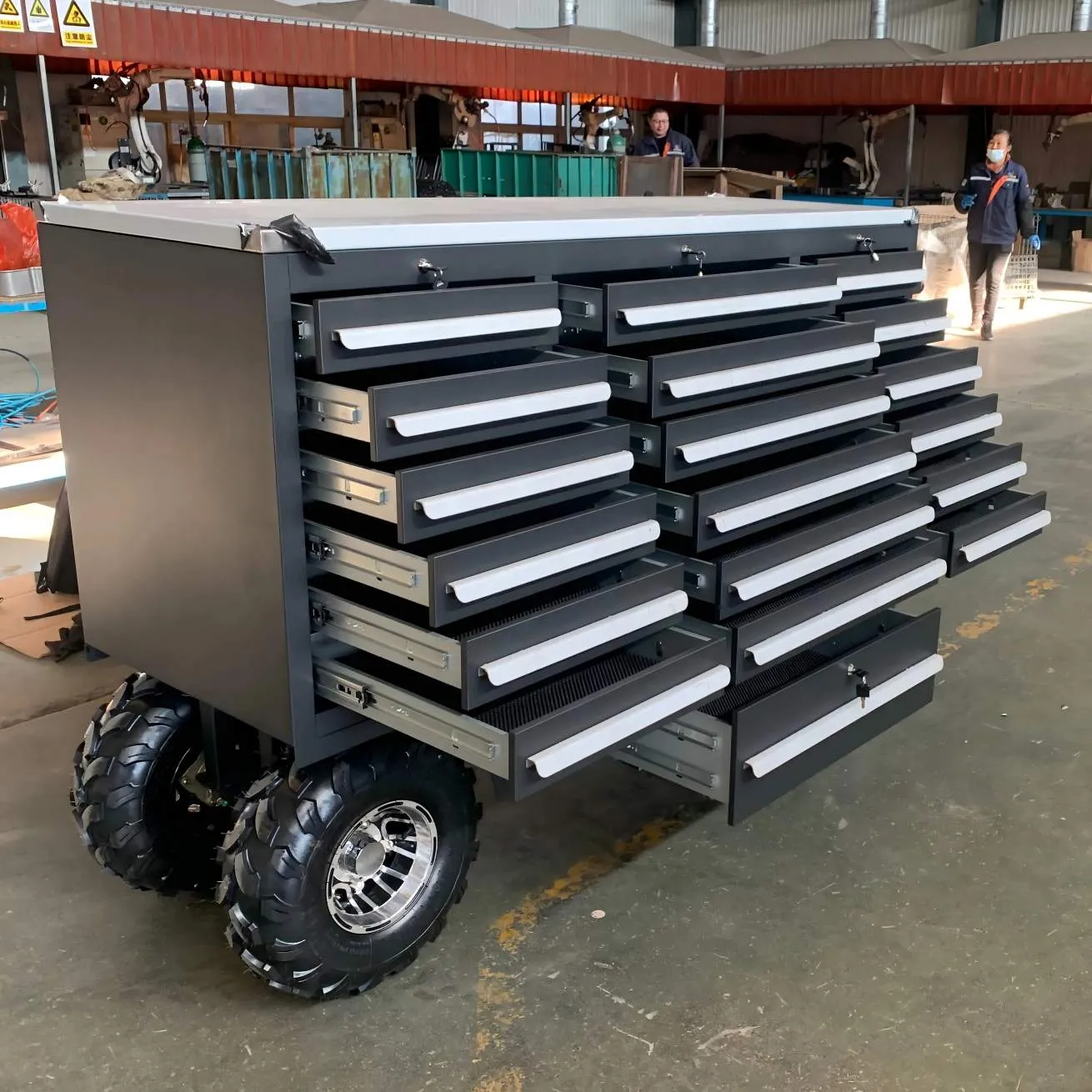 การเคลื่อนย้ายที่ยืดหยุ่นและสะดวกสบาย: การออกแบบลูกล้อที่ล็อคได้อย่างหนักช่วยให้หน้าอกเครื่องมือ OEM Roller Garage สามารถเคลื่อนย้ายได้อย่างง่ายดายระหว่างพื้นที่ทำงานที่แตกต่างกันและฟังก์ชั่นการล็อคสามารถมั่นใจได้ว่าตู้เครื่องมือมีความเสถียรและไม่เลื่อนระหว่างการทำงาน