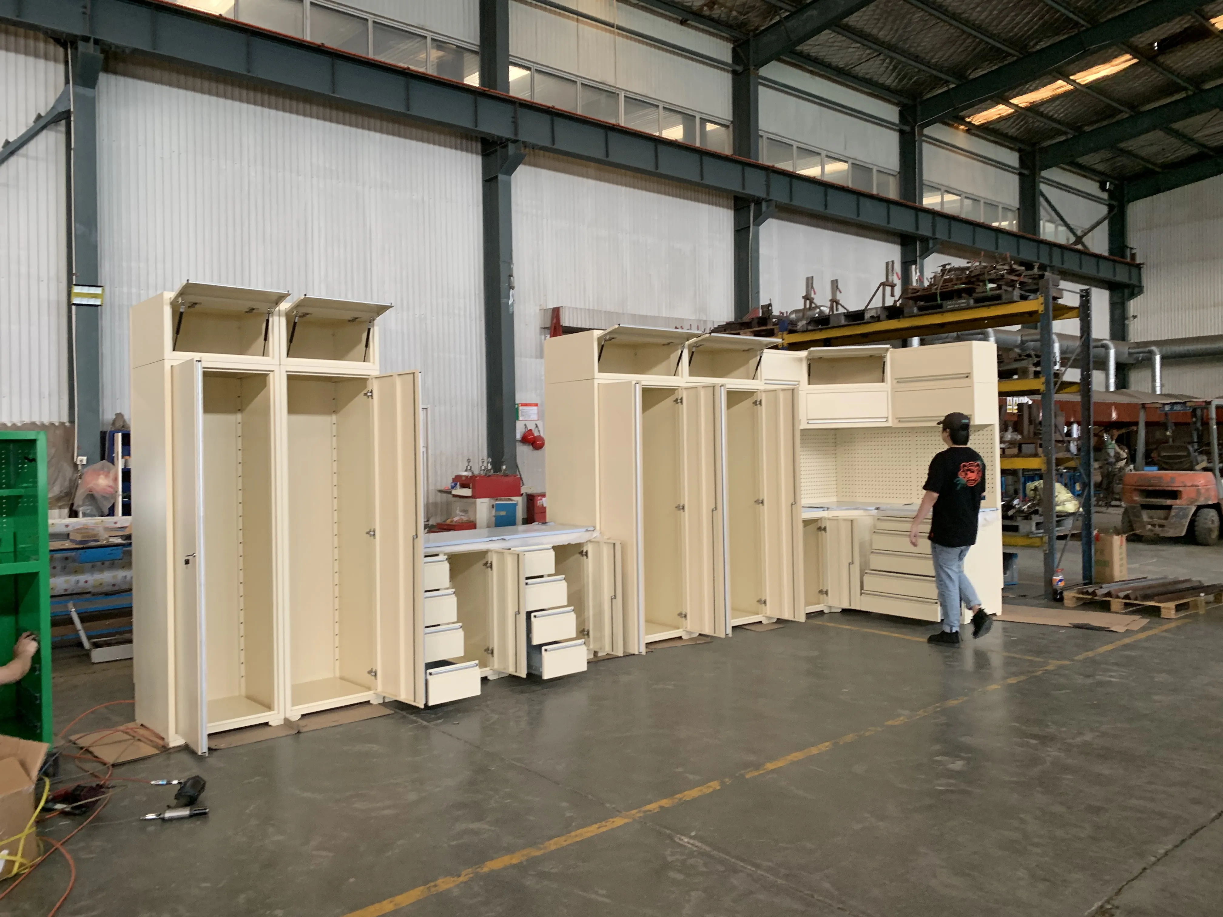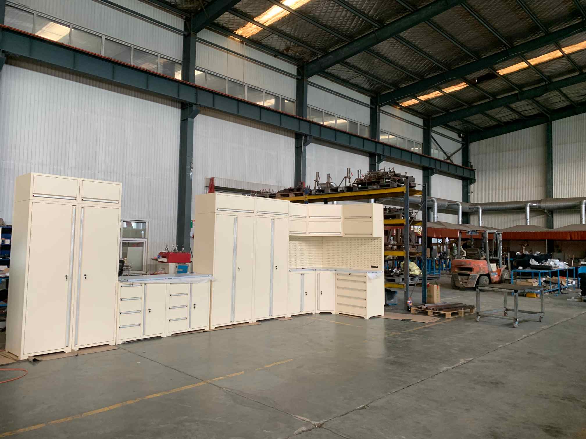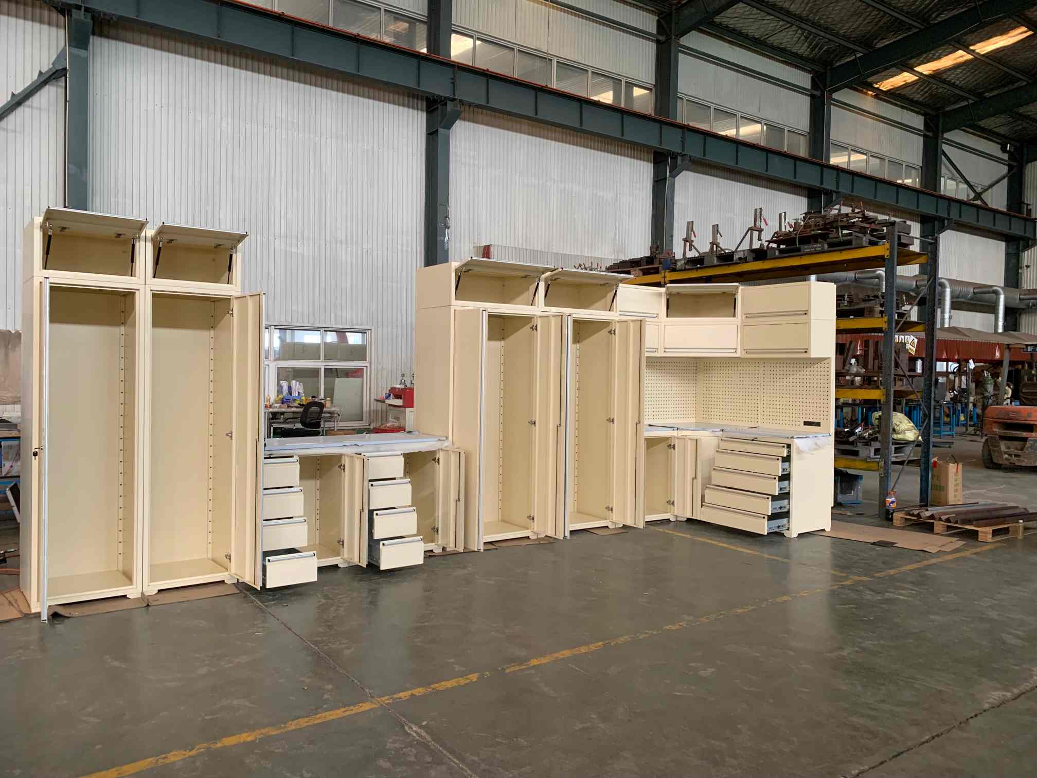 ตู้เครื่องมือ, โต๊ะเครื่องมือ, ตู้โรงรถ, รถเข็นหลุมเครื่องมือ, กล่องเครื่องมือ, อุปกรณ์เสริมหน้าอก, บ้านคอนเทนเนอร์และอื่น ๆ